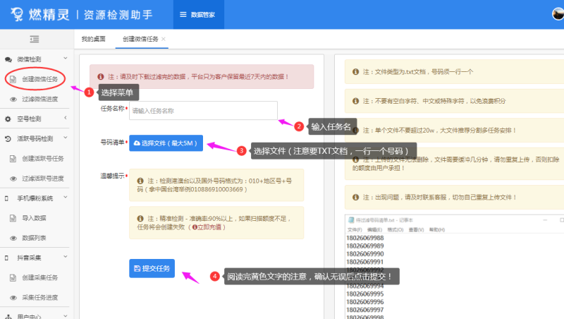 3. 上传文件支持txt格式,检测中可关闭软件或电脑